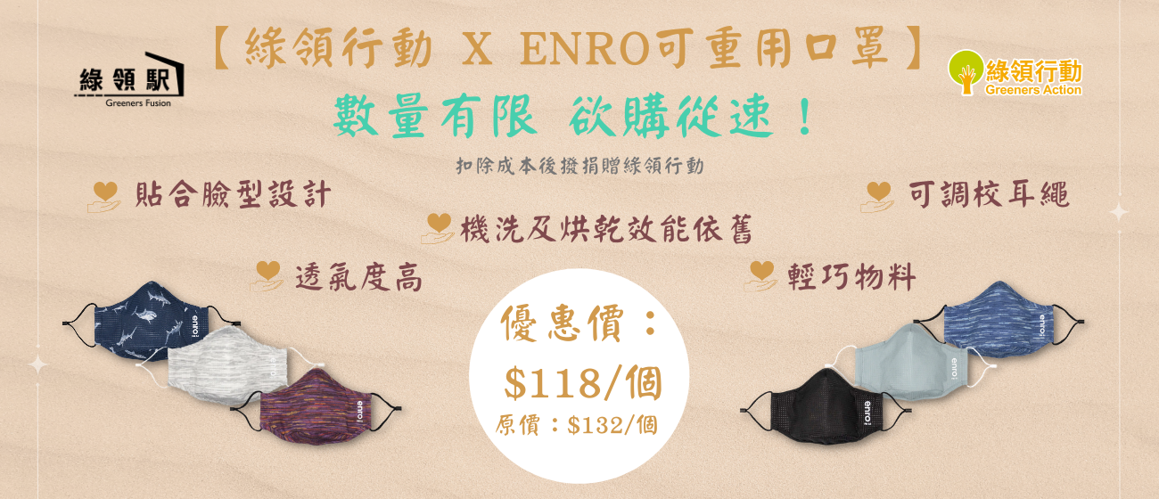 4. 綠領行動 X Enro tech可重用口罩 $118/個(原價$132/個)