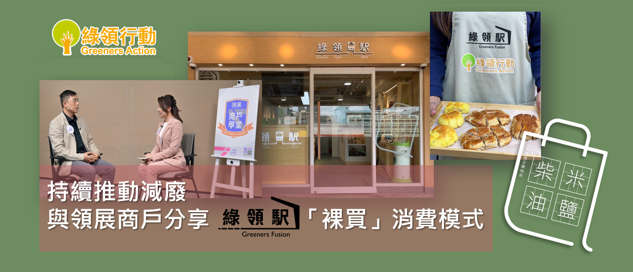 綠領行動一直致力提倡「裸買」概念,以減少因消費過程而產生的不必要包裝,達至綠色消費模式。去年6月本會更成立首間裸買店「綠領駅」,不經不覺間已經踏入1周年,成功將「裸買」帶入社區。本會總幹事何漢威6月應領展邀請,擔任「領展商戶學堂」講座嘉賓,向商戶以至一般大眾,分享「裸買」的理念和經營模式,同時提出源頭減廢,能夠如何有助商戶應對未來實施垃圾徵費後,節省因棄置垃圾而產生的成本。