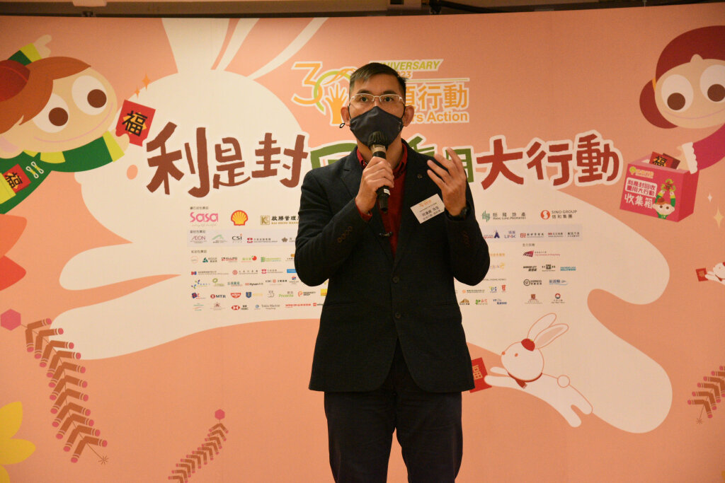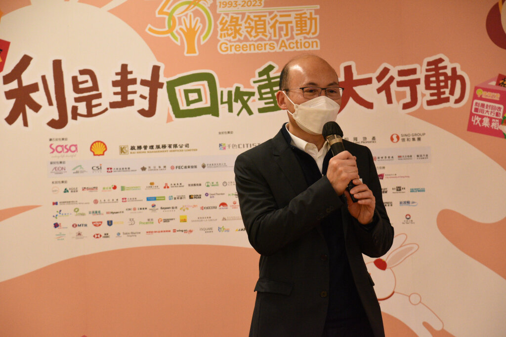 綠領行動於今日(1月30日) 舉辦活動啟動禮,並邀請環境保護署首席環境保護主任(減廢及社區回收) 黃偉民先生、莎莎化粧品有限公司高級副總裁、總法律顧問及公司秘書麥心韻女士、香港蜆殼有限公司企業傳訊及品牌副總經理蔡嘉茵女士,以及啟勝管理服務有限公司助理總經理(公司傳訊)王家敏女士等出席,加上在場近百位來賓蒞臨支持,陣容鼎盛。綠領行動呼籲市民在新年期間,由利是封開始,循環再用,減少耗用資源,為未來垃圾收費作好準備。