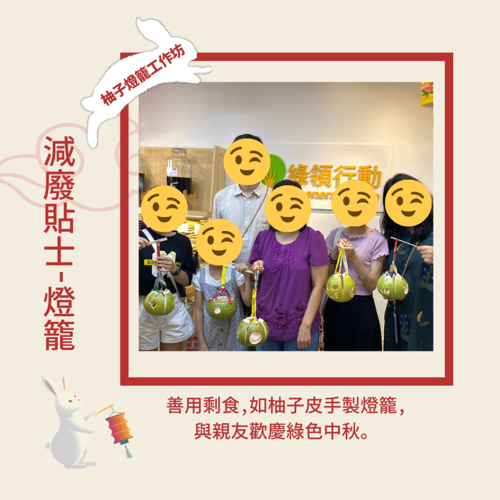大家又是否知道我們日常吃柚子剩下的果皮,其實可以製作成一個獨一無二的燈籠呢? 工作坊將會有導師指導大家如何發揮創意,將柚子果皮變成一個環保燈籠,一同減少浪費,共渡一個綠色中秋!