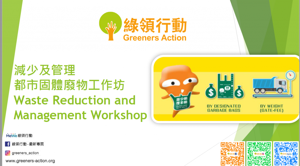 如有興趣為物業內不同的持份者舉辦都市固體廢物政策分享會講座,歡迎致電 34991780 或 電郵至info@greeners-action.org查詢。