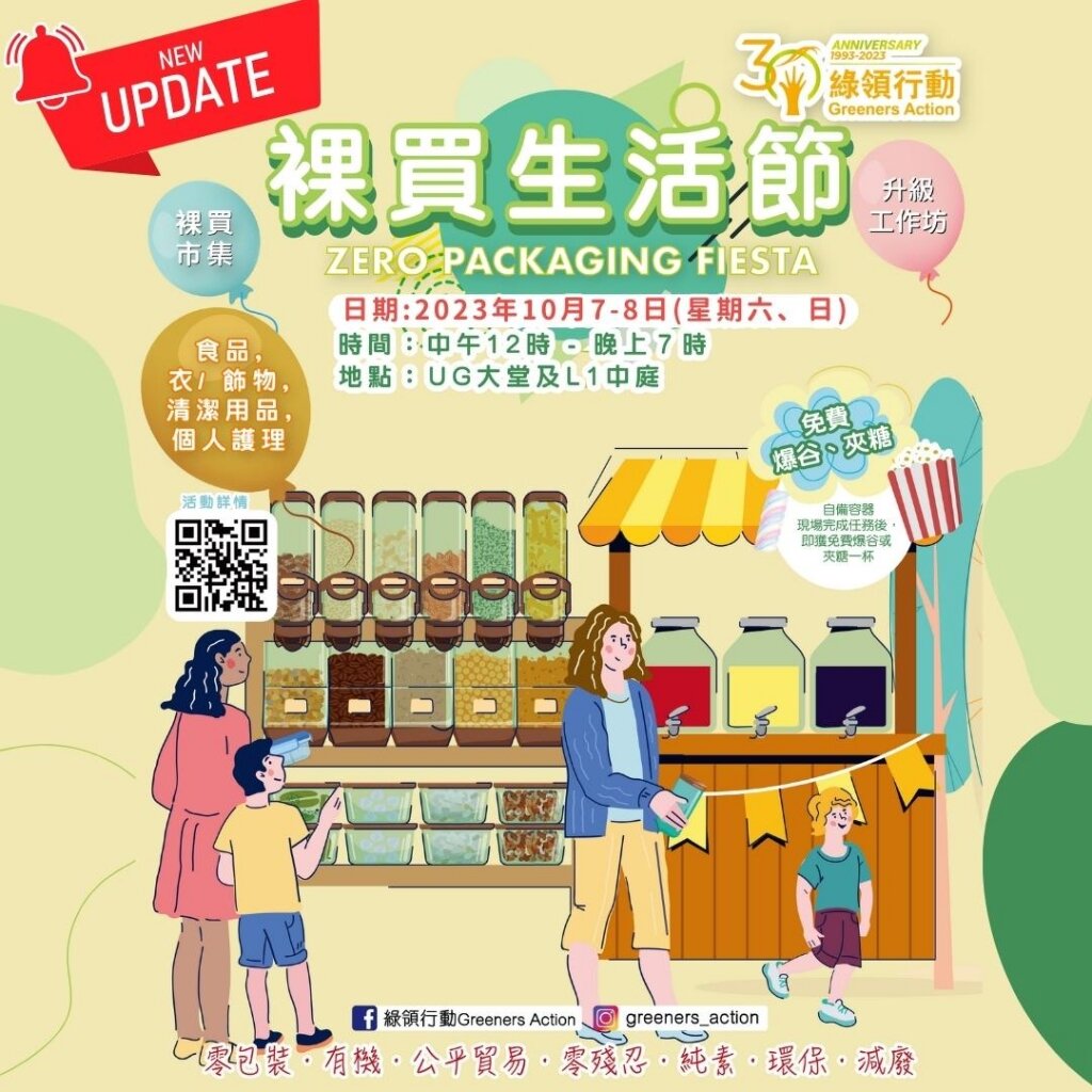 「無塑『裸買』,你試過未? 」現今社會鼓吹消費文化,產品常以「層層疊」的精美包裝,提升顧客的消費意欲,但卻導致過度包裝和過度購物等問題,令堆填區造成極大負擔。「裸買」在外地已經成為新潮流,意思為產品無任何外層包裝的意思,亦指顧客可自攜可重用器皿購買零包裝的產品,既環保又衛生。本地環保團體綠領行動一直推動可持續消費,即將一連兩日 (2023年10 月 7 至 8 日) 在觀塘裕民坊舉辦第二屆自備容器市集「裸買生活節」,召集接40 個「裸買」攤檔、過百本地永續品牌,包括本地製造食品和日用品、有機作物與副產品、動物友善護膚與化妝品、升級再造時裝等。市民只需自備容器,便可到現場購買心水產品,按自己喜好配搭,或根據家庭需要購買所需份量,確保貨品新鮮購入,不用囤積大量包裝產品,感受「裸買」的好處與樂趣。