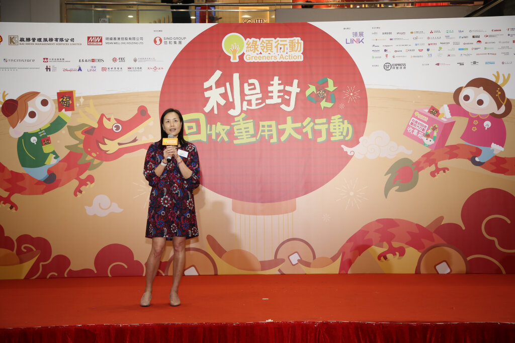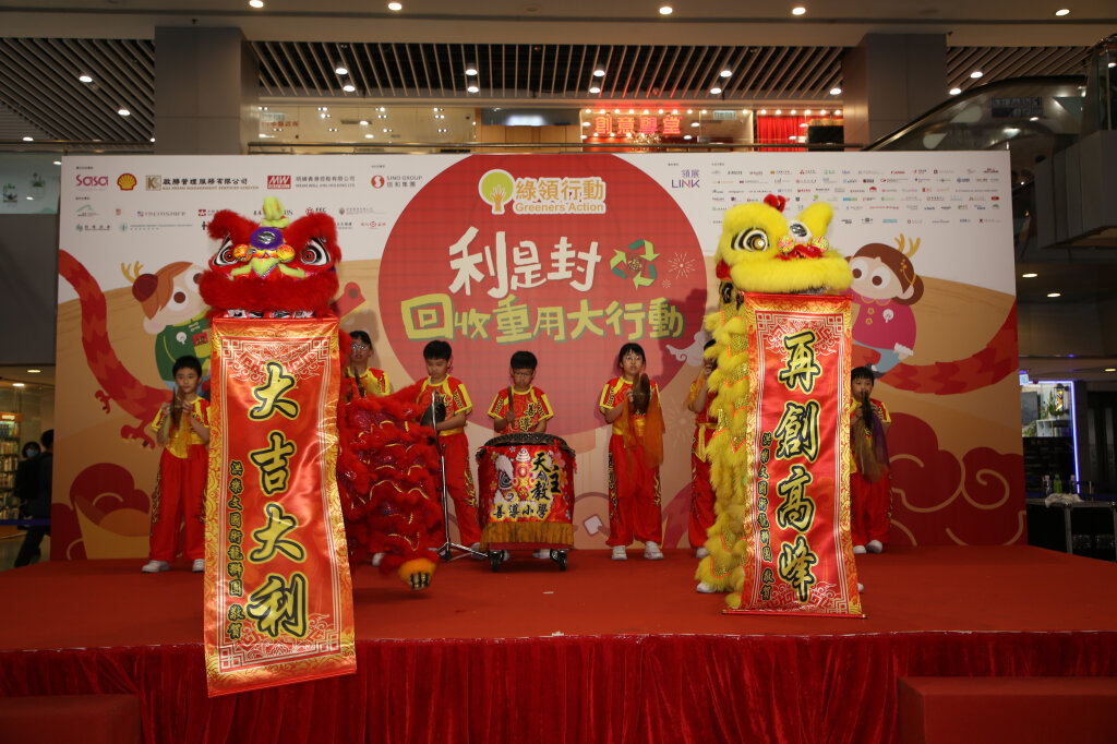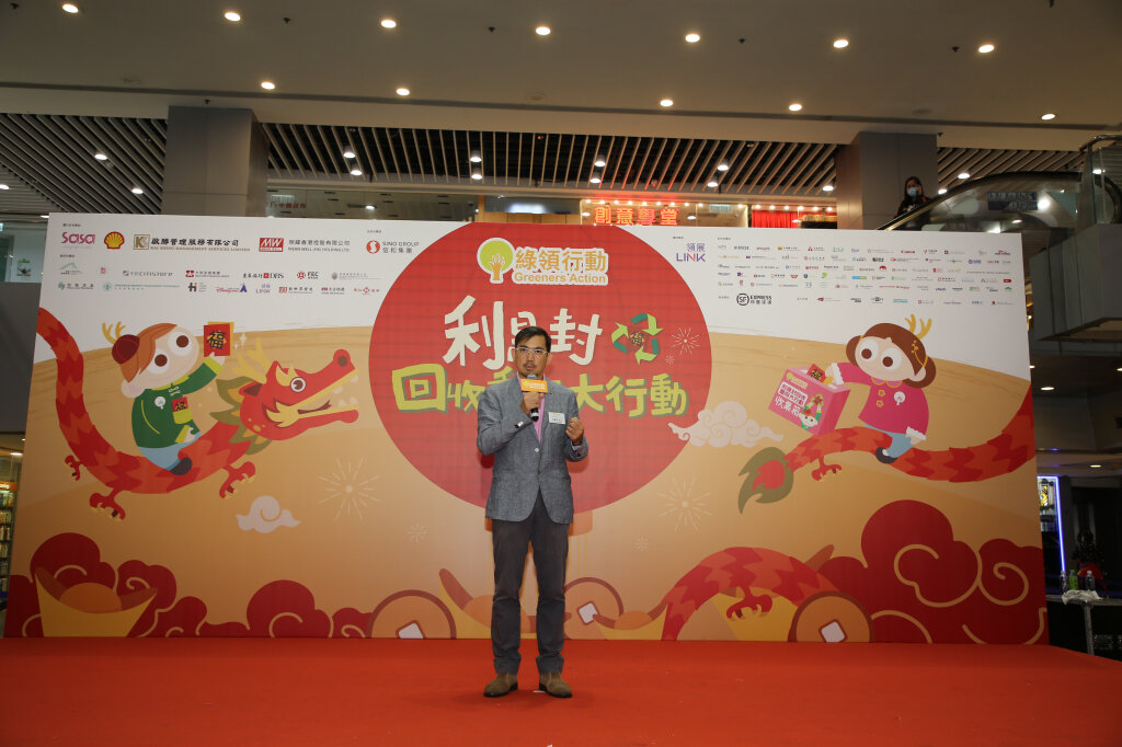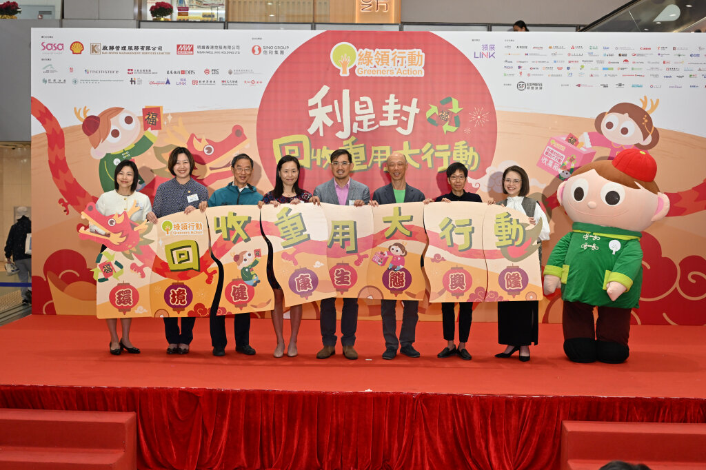 Kickoff ceremony is organized on 19th Feb, with the presence of Mr WONG Kam-sing, GBS, JP, Mr. Lam Chiu-ying SBS, Principal Environmental Protection Officer(Waste Reduction & Community Recycling) Ms. NG So Chun, Senior Vice President, General Counsel and Company Secretary,Sa Sa International Holdings Limited, Ms. Simmy Mak, General Manager of Shell Hong Kong Limited, Ms. Emily Leung, Assistant General Manager (Corporate Communication), Kai Shing Management Services Limited, Ms. Carmen Wong and Charity Commissioner, Mean Well (HongKong) Holding Limited, Ms. Vicki Ho, together with around 70 guests participated. The officiating guests assembled a dragon-shaped auspicious puzzle, symbolizing good luck and prosperity in the Year of the Dragon. Greeners Action encourages public to recycle lai see packets during Lunar New Year, in order to reduce minimize waste, be prepared for the waste charging policy in August.