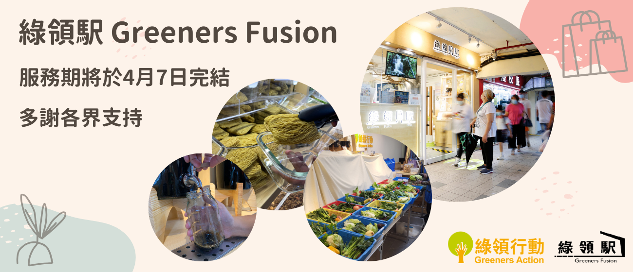 由本會成立的裸買體驗店「綠領駅Greeners Fusion」服務期將於2024年4月7日完結,感謝各界支持,攜手為本港減少即棄包裝廢物盡一分力。