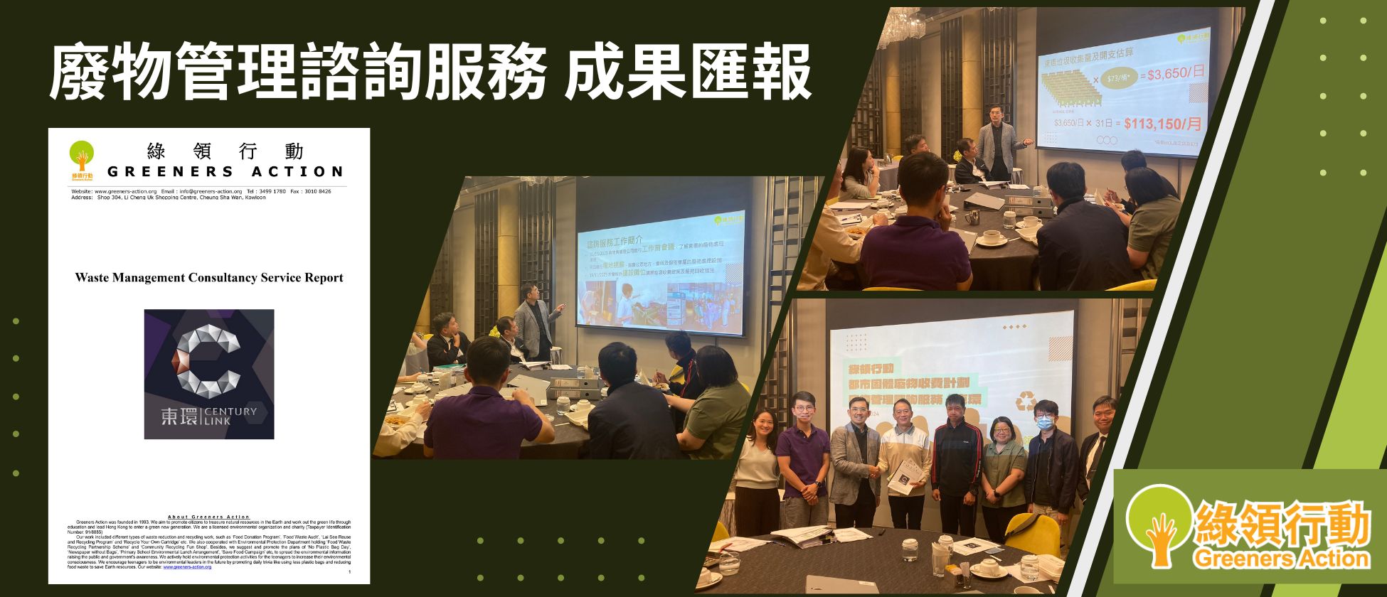 垃圾收費是一項嶄新、全港性的環保措施,冀推動市民回收及做好源頭減廢。惟不少屋苑均仍在研究如何收集垃圾。綠領行動早前為屋苑東環進行「垃圾管理顧問服務」,了解現有的垃圾處理配套、流程及回收物處理系統,以提供建議。