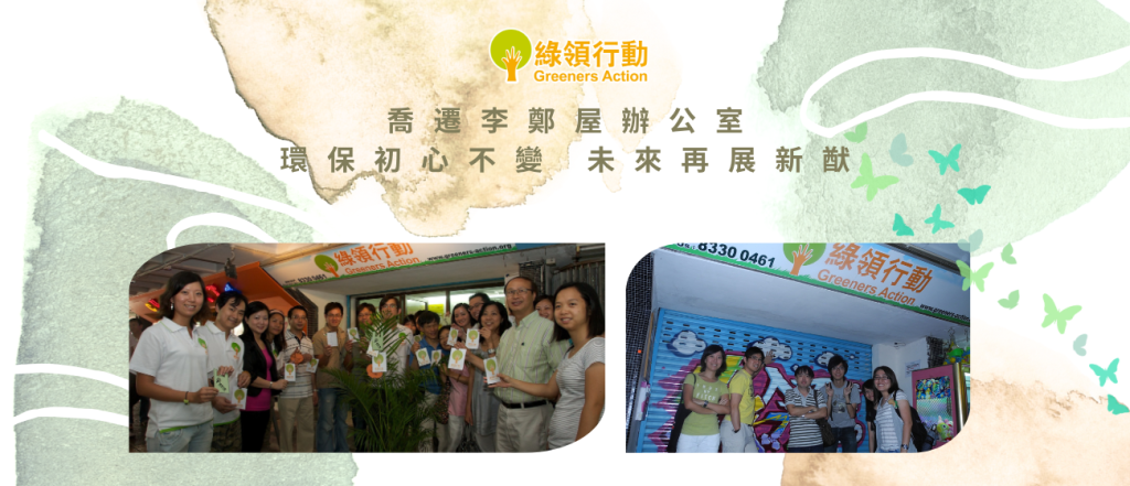 綠領行動推動環保工作三十載,承蒙各界關愛及支持,本會工作得以順利拓展,由最初在長沙灣李鄭屋邨辦公室,在2018年搬至更寬敞的荔景祖堯邨辦公室,員工人數倍增,令本會可以涉足更多範疇或擴大現有環保工作的規模,包括 「減少使用/派發雨傘膠袋審核認證計劃」、「利是封回收重用大行動」,以及垃圾收費、管制即棄塑膠、塑膠購物袋徵貴等多項政策倡議工作。