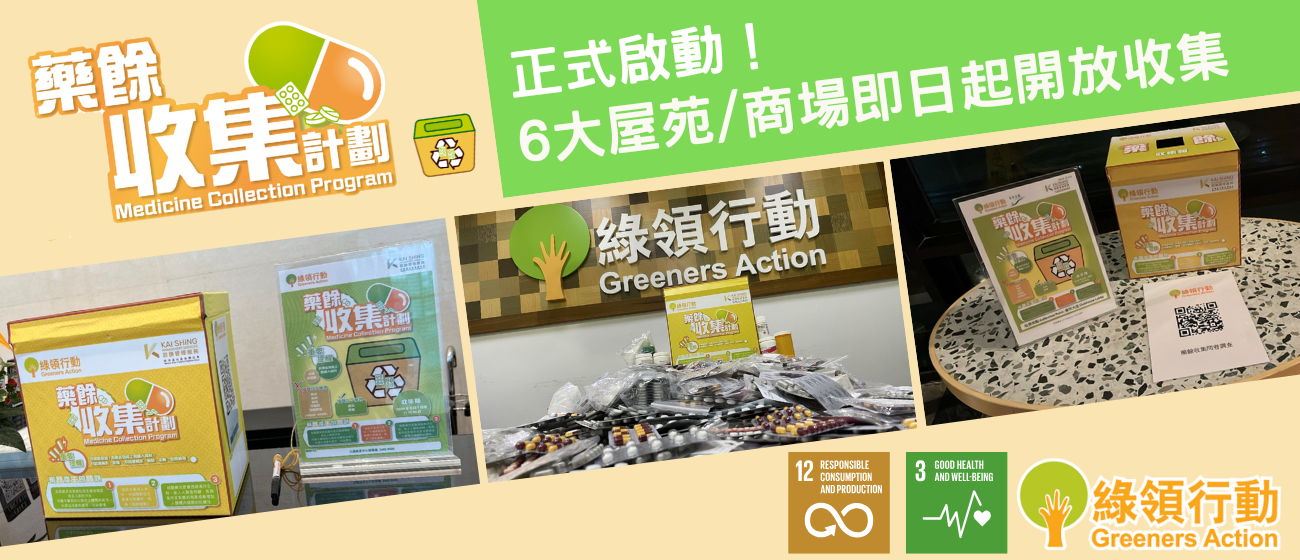 為保護環境及公眾健康,綠領行動推出藥餘收集計劃,鼓勵市民妥善處理家中過期或不再使用的藥物。隨意丟棄藥物或將其沖入廁所,可能導致化學物質污染水源和土壤,危害生態環境,並增加抗藥性細菌的風險。