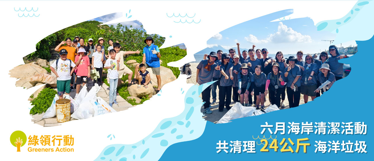 本會於六月分別與陽明海運及柴灣浸信會社會服務處合作,於屯門小欖海灘及石澳舉辦了兩場海岸清潔活動。雖然天氣炎熱,陽光猛烈,參加者依然無懼高溫,積極投入清潔工作,合力清理了共24公斤海洋垃圾。