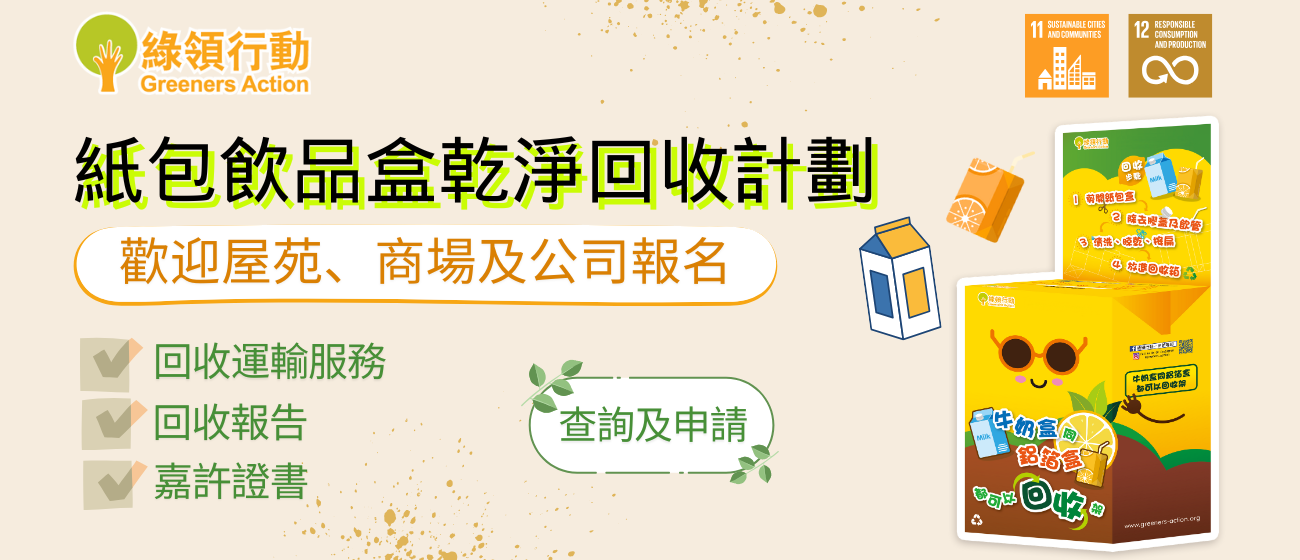 「紙包飲品盒乾淨回收計劃」現正接受申請