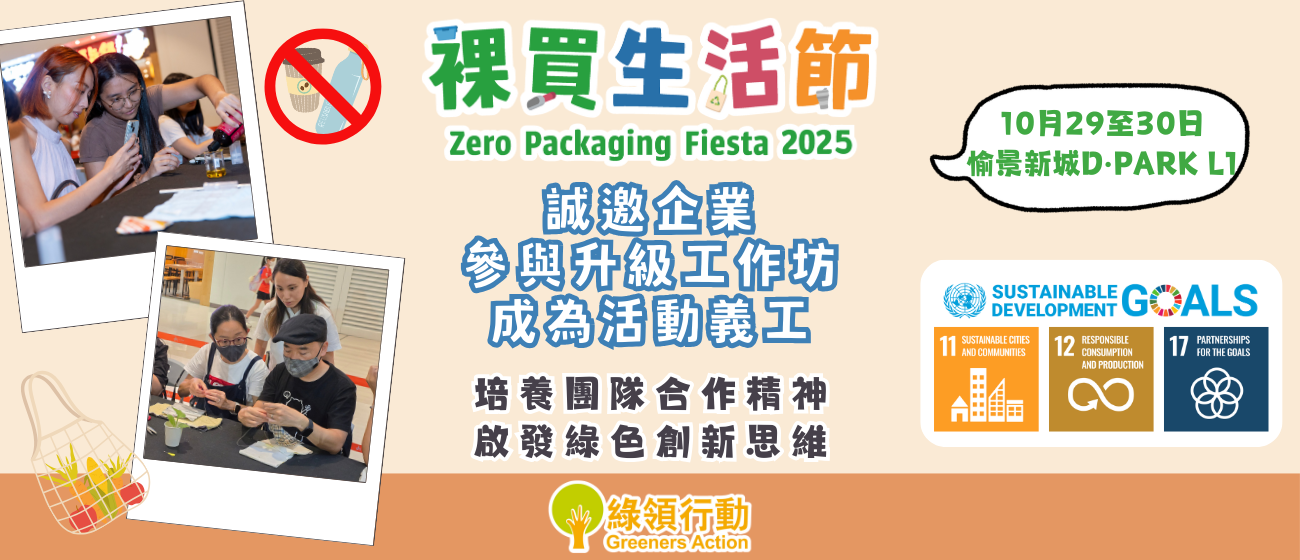 本會亦誠邀企業招募義工協助「裸買生活節」現場運作,與我們共同推廣零廢理念。大家的參與將為活動增添力量,啟發更多人實踐可持續生活,共創綠色未來。如有查詢或有意參與義工計劃,歡迎與本會葉小姐聯絡(電話:3499 1780,電郵:cmyip@greeners-action.org)。