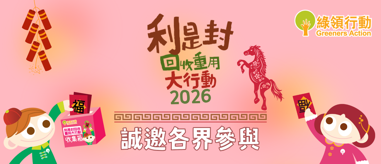 今年行動邁向第17載,本會現密鑼緊鼓籌劃「利是封回收重用大行動2026」,誠邀 貴公司/機構加入,一起派發新生利是封、贊助回收站,或簽署「環保利是封」約章,共築低碳新年。