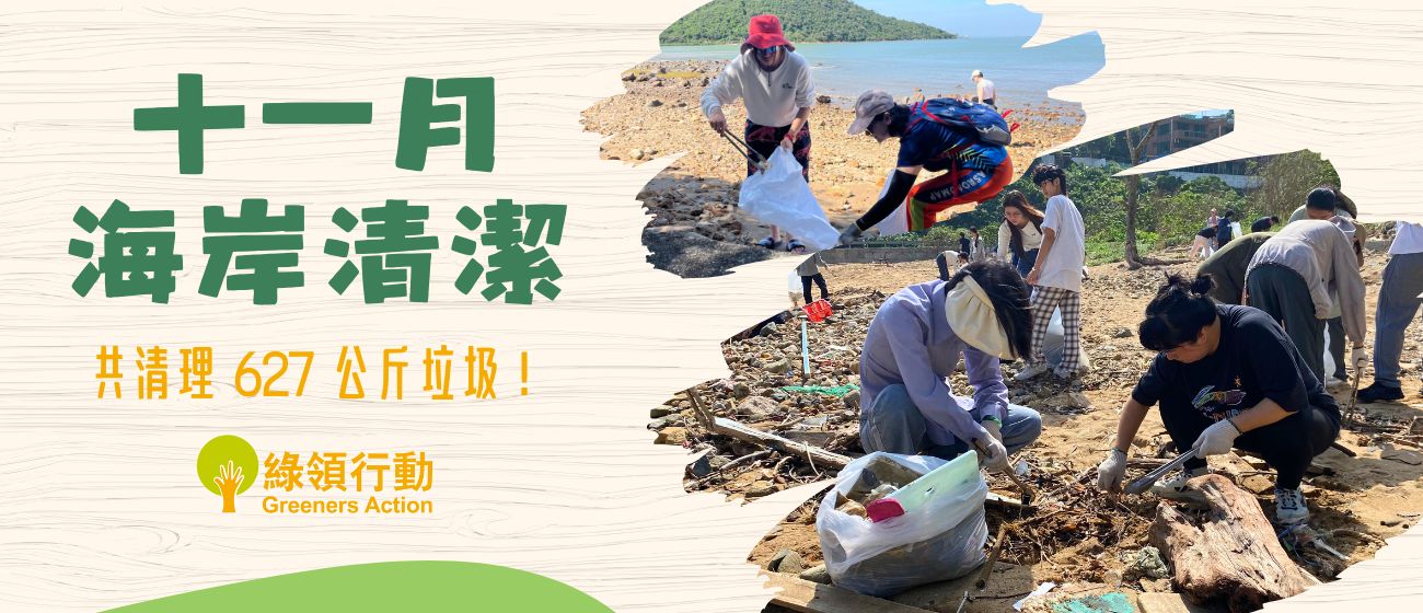 除《綠領奇兵 Amazing Greeners-膠戰吉澳》外,本會十一月另舉行了四次海岸清潔活動,參加者包括企業及非牟利團體代表,參加人數超過250人,共清理627公斤海岸垃圾。