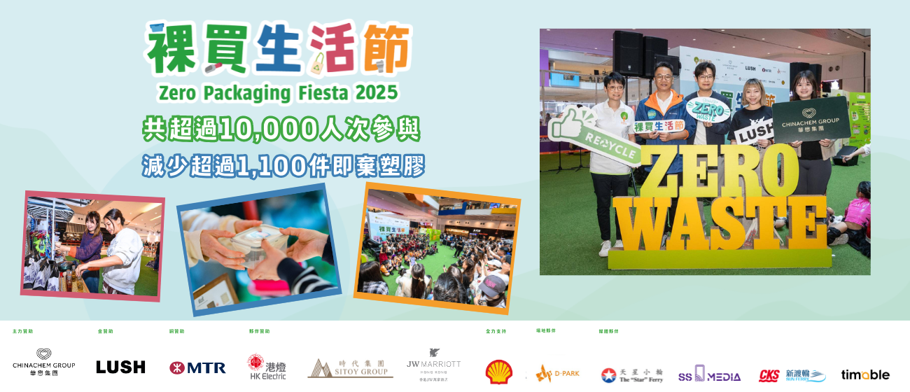 本會衷心感謝各個單位、「裸買」攤檔檔主以及超過10,000位市民的參與及支持,實踐可持續消費習慣,令活動圓滿成功!透過一年一度的「裸買生活節」鼓勵大家自備購物容器,踏出裸買第一步。期望日後能夠再次於活動與大家見面,繼續共同創造一個更環保、更可持續的未來!