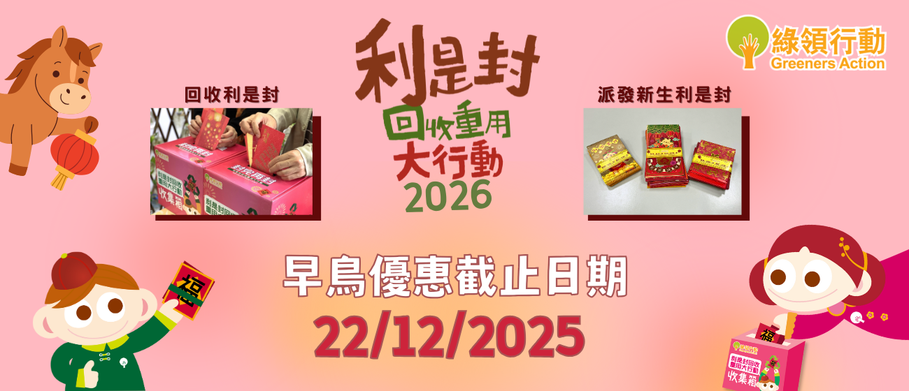 最新消息 > 本會會訊 > 綠領行動會訊 (2025年12月)號外:利是封回收重用大行動 2026 早鳥優惠下周一截止