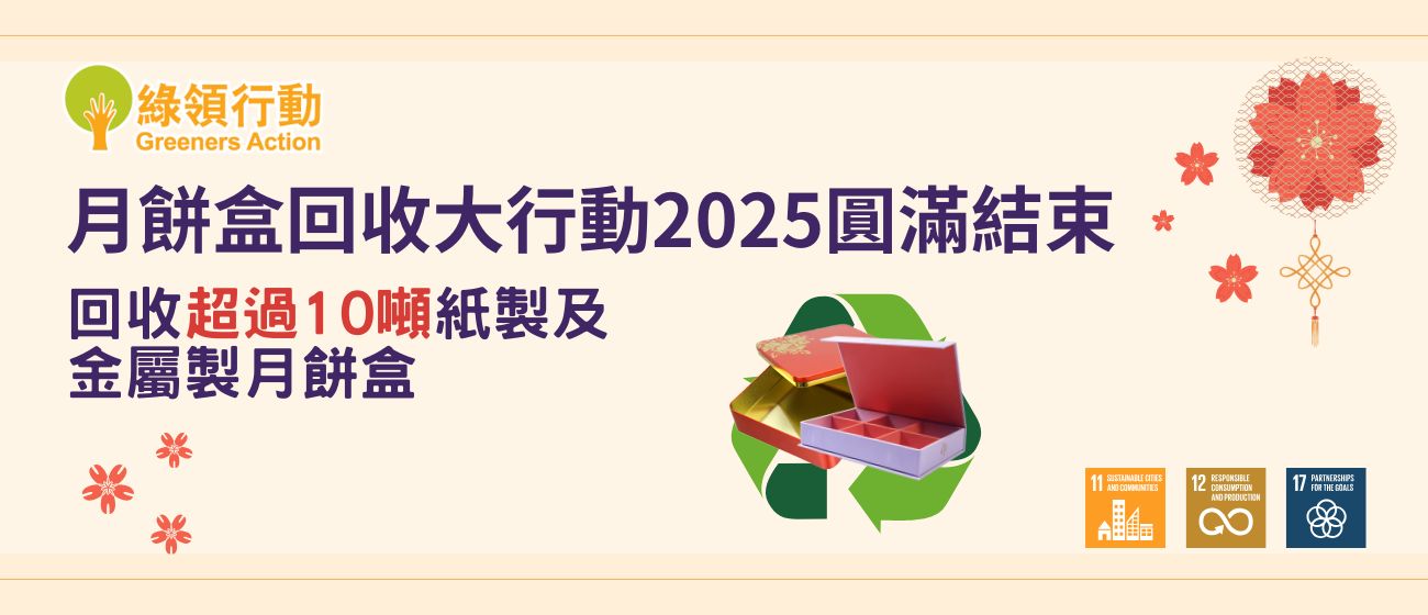 本會連續第13年舉辦「月餅盒回收大行動」,持續鼓勵市民於節日期間實踐源頭減廢和乾淨回收。
