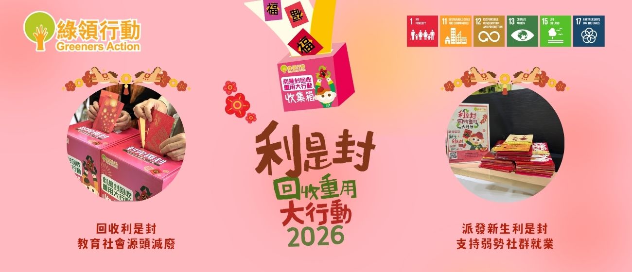 自2009年起,由綠領行動發起的「利是封回收重用大行動」,至今累計回收超過8,800萬個利是封。惟據本會2023年的調查,全港每年仍消耗逾3.2億個利是封,回收量與實際消耗差距仍然巨大。